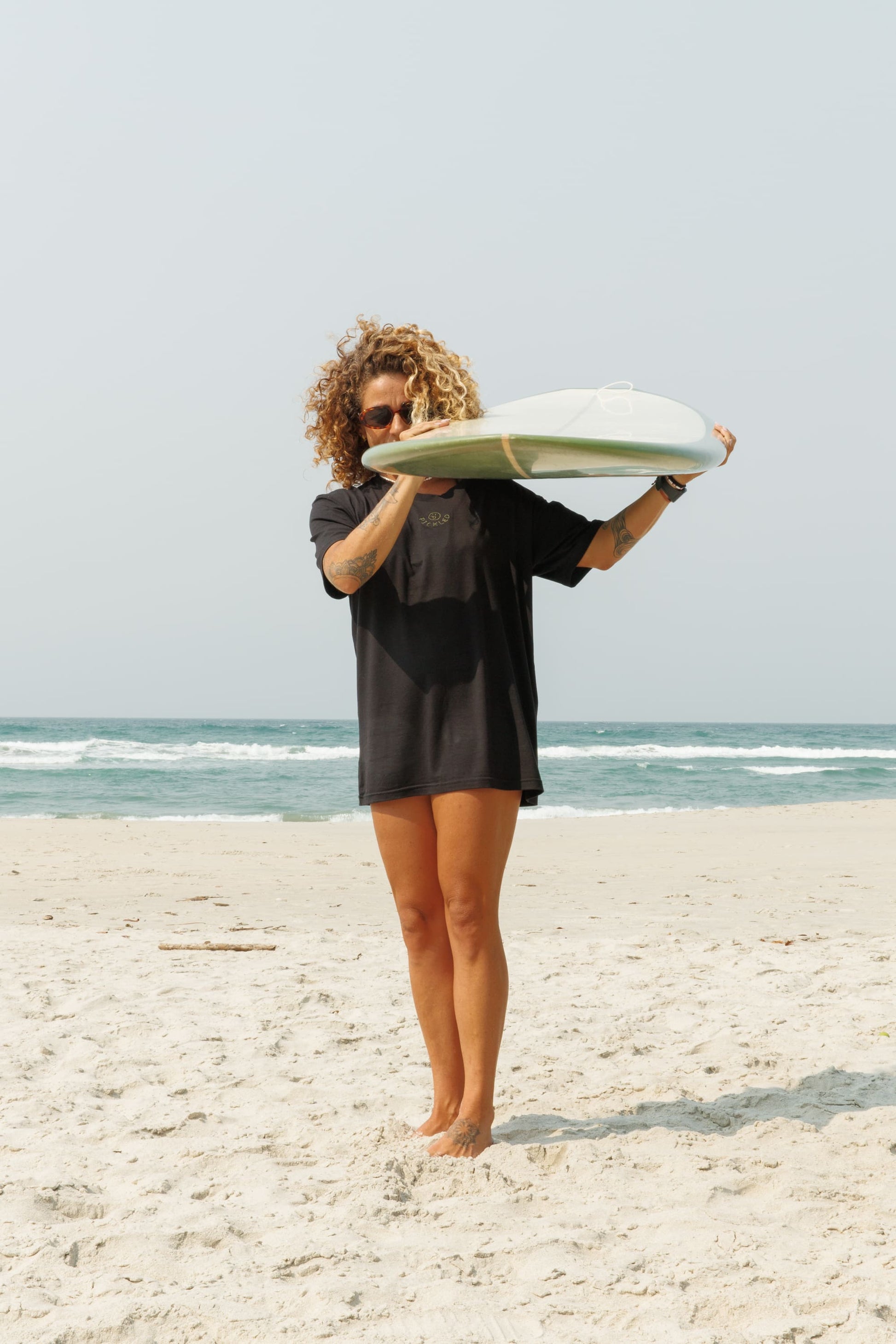 Camiseta confeccionada na cor preta em malha leve e super stretch com logo bordada em verde centralizado no peito.